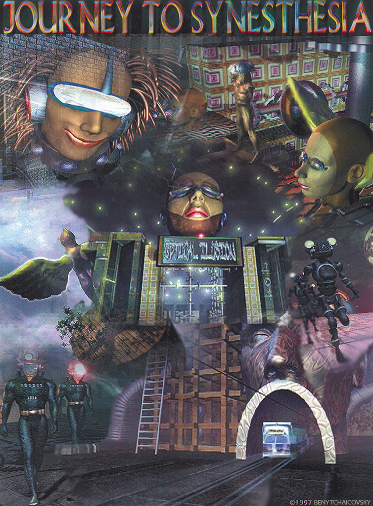 In 1993 Beny established “ZOE Productions” a 3D computer animation company based in his studio in Fairfax, California. In 1994, segments of Tchaicovsky’s animation were included in the VHS compilation The Gate to the Mind’s Eye, It featured, among others, his 3D animation titled “Quantum Mechanics”, which included segments of his shorts 3D animation titled “Modus Vivendi”, “Delirium Tremendus“and “House of Mirrors”. “Out of Step” , “The Traveller” and “Intelligent Life”, segments from Tchaicovsky’s “Cyberscape”, were seen in the 1996 compilation Odyssey into the Mind’s Eye, a 45 minute program latest addition to the “Mind’s Eye series” distributed by Sony Music Video.
